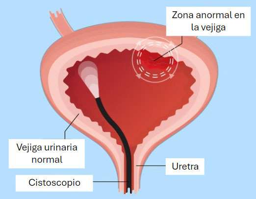 - Uretrocistoscopia: prueba que consiste en ver por dentro la uretra y la vejiga con una sonda que lleva una cámara incorporada